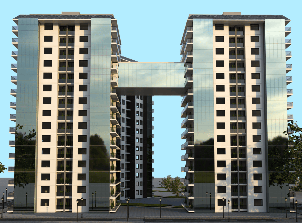 It consists of 24 residential towers, with 15 floors in each tower